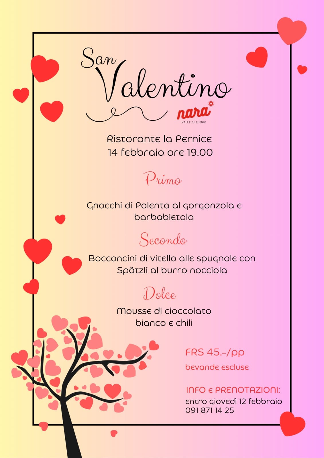 Scopri il menu della cena.